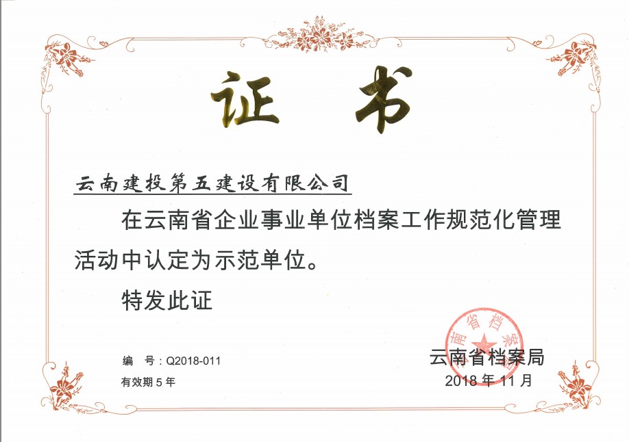 11月15日,公司通過云南省企業(yè)事業(yè)單位檔案工作規(guī)范化管理認(rèn)定審核,榮獲“云南省檔案工作規(guī)范化管理示范單位”稱號(hào),成為集團(tuán)內(nèi)第三家通過檔案工作規(guī)范化管理審核認(rèn)定的單位。