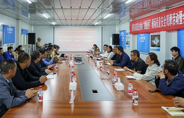 9月24日,昆明市建筑業(yè)協(xié)會(huì)在公司第七直管部負(fù)責(zé)施工的五華區(qū)數(shù)字經(jīng)濟(jì)產(chǎn)業(yè)園西北新城園區(qū)項(xiàng)目召開“質(zhì)量月”現(xiàn)場(chǎng)質(zhì)量安全觀摩活動(dòng)暨會(huì)長(zhǎng)、副會(huì)長(zhǎng)、常務(wù)理事會(huì)議。昆明市建筑業(yè)協(xié)會(huì)會(huì)長(zhǎng)張?jiān)浦コ鱿瘯?huì)議。
