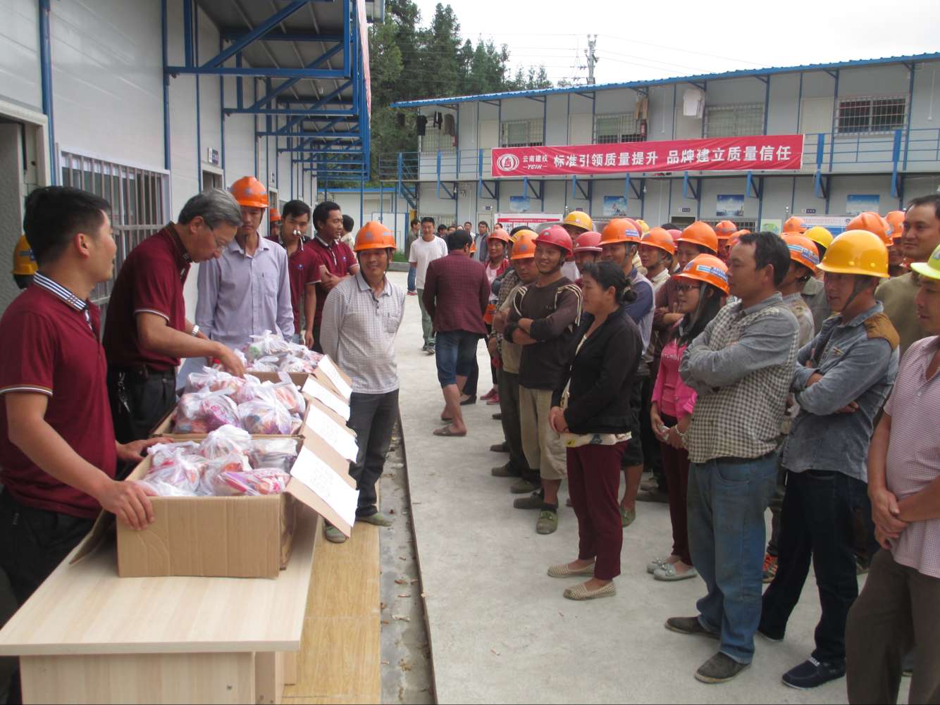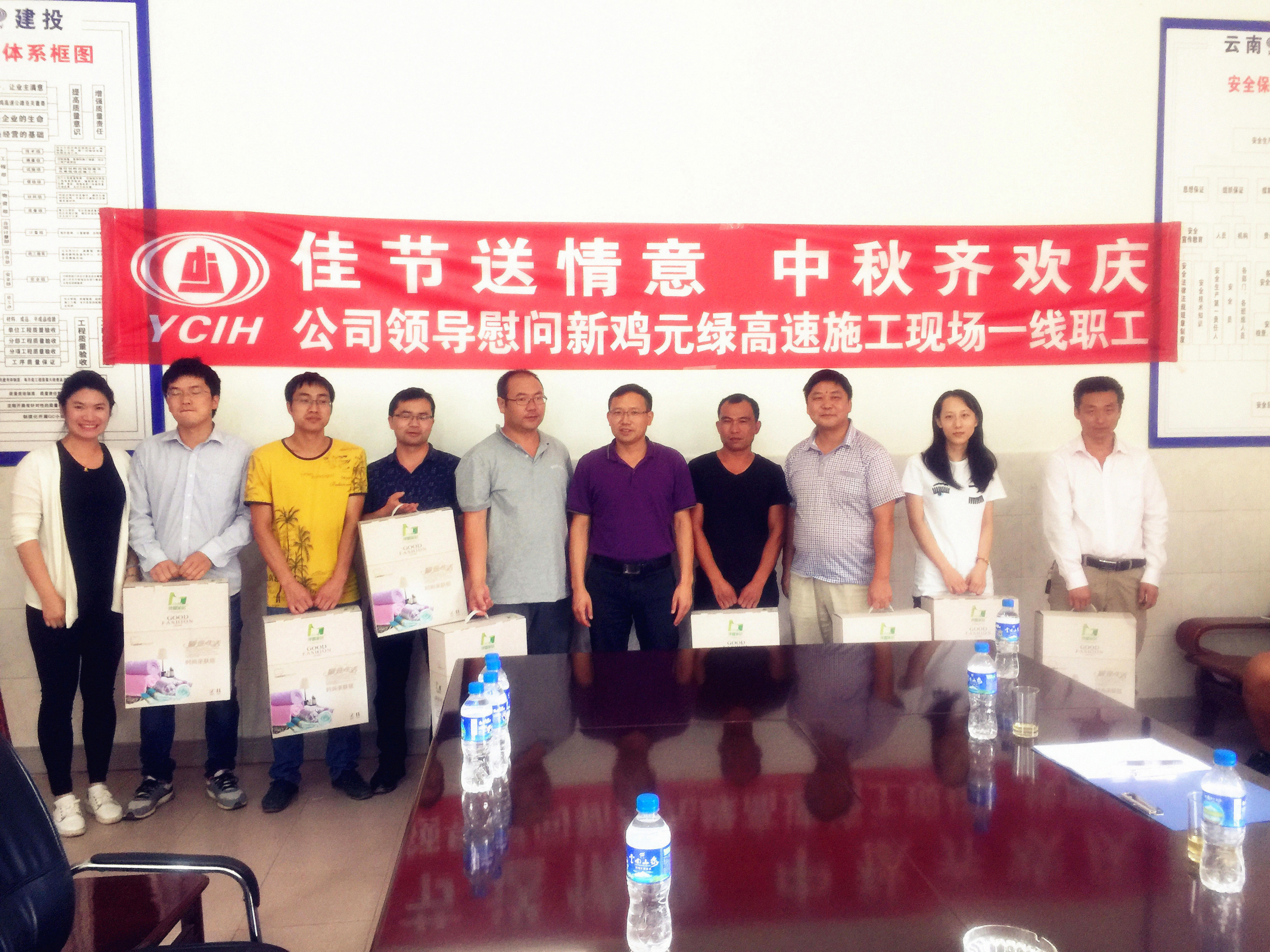 此次慰問小組來到了昭通、保山、怒江、大理片區(qū)及新雞、大戛、彌玉、元綠、香麗高速等重點工程及邊遠工程進行中秋國慶前慰問,共計向公司奮戰(zhàn)在一線的1800余名職工發(fā)放了慰問品。除公司領(lǐng)導(dǎo)班子成員帶隊慰問項目外,全司各基層單位均對一線職工開展了兩節(jié)慰問活動并向全司近萬名農(nóng)民工發(fā)放了月餅。