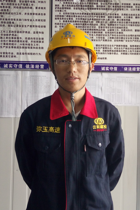 潘明,路橋三部安全總監(jiān),2015年獲評集團先進基層優(yōu)秀安全工作者,在工作中把現(xiàn)場安全監(jiān)督作為安全工作根本,主抓預(yù)防與控制,每天深入施工作業(yè)現(xiàn)場,辨識、管控主要危險源,排查并及時消除安全隱患。2016年8月來到大戛高速公路六工段,從房建板塊轉(zhuǎn)型到路橋板塊,扎實開展工作,從最基礎(chǔ)的國家管理規(guī)范著手,根據(jù)云南省平安工地建設(shè)方案、公司及指揮部的管理要求及辦法,完善內(nèi)業(yè)資料,在歷次的安全考核中,八個工段里六工段內(nèi)業(yè)考核排名第一。利用“走動式、觀察式、交流式、行動式”方法記錄項目情況,每周例會講評、每月底總結(jié),時刻繃緊安全這根弦。