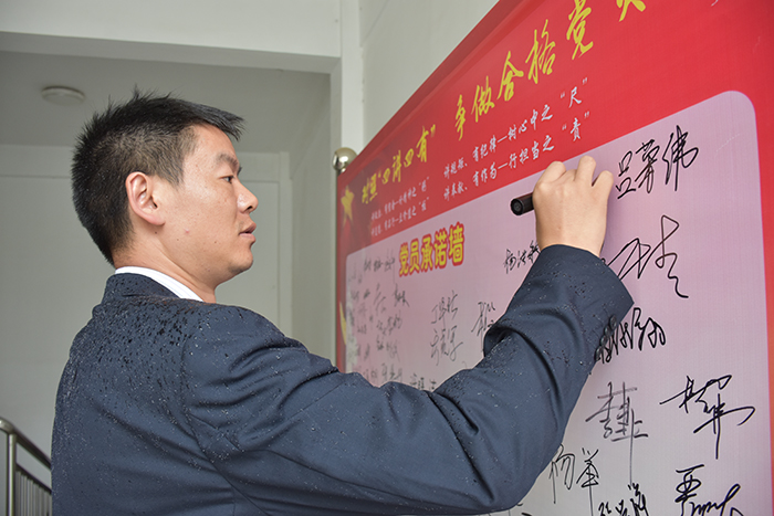 參會(huì)的150余名黨員在承諾墻上簽字承諾:對(duì)照“四講四有”,爭(zhēng)做合格黨員。