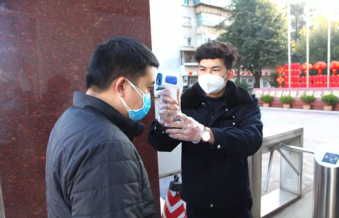 體溫關(guān):測體溫是此次疫情防控的第一道防線,公司信訪維穩(wěn)辦和物業(yè)公司管理人員每天上班前嚴(yán)陣以待,堅守在公司機關(guān)兩個入口對進出職工測量體溫,進行健康登記。職工們按照綜合辦下發(fā)的《機關(guān)辦公區(qū)疫情防控指南》提前戴好口罩,井然有序、保持距離等待測量。下午時段,職工需分批前往入口處進行二次測量體溫,并做好登記,一旦超過37.2℃,將啟動應(yīng)急處理。