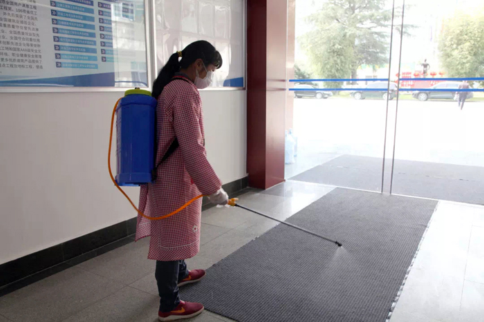自1月26日起,物業(yè)公司在公司家屬區(qū)張貼了《關(guān)于加強小區(qū)疫情防控的通知》,懸掛防疫宣傳橫幅,加大疫情防控知識宣傳力度,提升團山小區(qū)居民的防控意識,為做好隔離防護工作打好“預(yù)防針”。同時,物業(yè)公司安排保潔綠化人員每天對職工家屬區(qū)的公共區(qū)域、衛(wèi)生間進行了全面消毒,全力保障家屬區(qū)的衛(wèi)生安全。