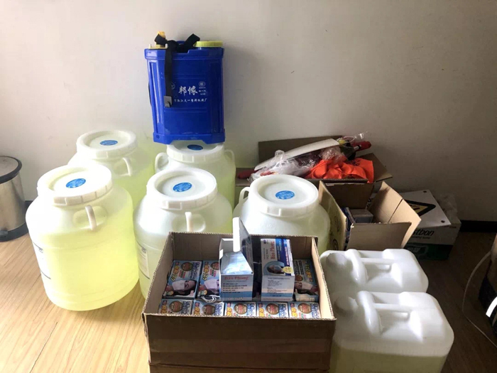 物業(yè)公司在復(fù)工前就采購了130支體溫槍,125桶消毒液、65個噴霧器、45個護目鏡、23000個口罩、22套防護服、2箱一次性手套,確保物資供應(yīng)充足。復(fù)工第二日,公司給每一個在崗職工發(fā)放了10個一次性口罩。