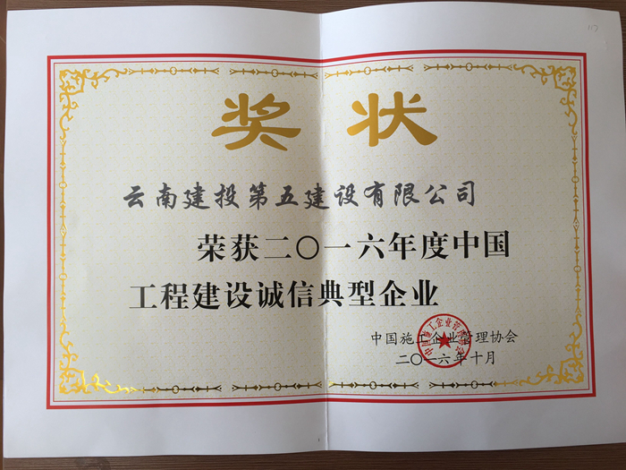 近年來,公司認真踐行集團“愛崗敬業(yè)、珍惜崗位、誠實守信、依法經(jīng)營”的企業(yè)文化。今年9月,公司順利通過了中施協(xié)“AAA”級信用企業(yè)的復(fù)評,并由云南省建筑業(yè)協(xié)會推薦為“中國工程建設(shè)誠信典型企業(yè)”。
