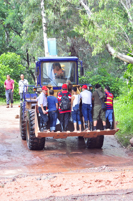 道路中斷,裝載機(jī)協(xié)助當(dāng)?shù)鼐用癯鲂?FONT style="FONT-SIZE: 7.5pt">(陸建樹/攝影)