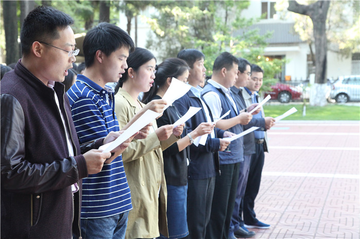 4月21日云南省建設(shè)投資控股集團(tuán)有限公司成立,在成立大會上《建投之歌》唱響了新篇章。在這之前,公司利用QQ群等方式發(fā)布了《建投之歌》的音頻和歌詞供大家自學(xué)傳唱,并推薦了兩名在唱歌比賽中取得優(yōu)異成績的員工參加集團(tuán)合唱排練。在公司發(fā)出學(xué)唱《建投之歌》的通知后,有的同事將歌詞打印出來,貼在醒目的位置。黨委工作部給每一個黨務(wù)學(xué)習(xí)臺新?lián)Q了印有《建投之歌》歌詞的內(nèi)頁。公司食堂午餐時間循環(huán)播放《建投之歌》。午休時,有的辦公室里傳來了《建投之歌》的歌聲,原來是有的同事瀏覽著公司發(fā)布的微信圖文在跟唱?!督ㄍ吨琛芬粫r間成為了公司的流行歌,不經(jīng)意間就有同事在哼唱歌曲的旋律。