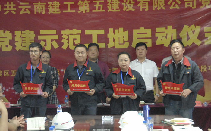 會上,李興奎、施文鐘為項目授予“黨建示范工地”牌匾,并為項目一線黨員發(fā)放“黨員示范崗”標(biāo)志牌。項目臨時黨小組黨員現(xiàn)場宣讀了承諾書。項目經(jīng)理李朝松與年輕員工簽訂了《黨員帶徒責(zé)任書》。