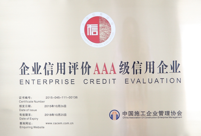 中國工程建設(shè)企業(yè)社會信用等級AAA級獎牌