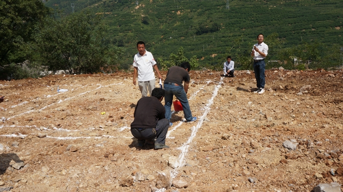 8月29日,項目進(jìn)入挖土、清理樹苗等前期工作,當(dāng)天就完成面積800平方米、深1.5米的場平工作。8月30日,場平工作全部結(jié)束。8月31日,管理人員對現(xiàn)場進(jìn)行勘察,連夜設(shè)計出平面布置圖。9月1日,放線、挖土、澆墊層等工作全部完工。