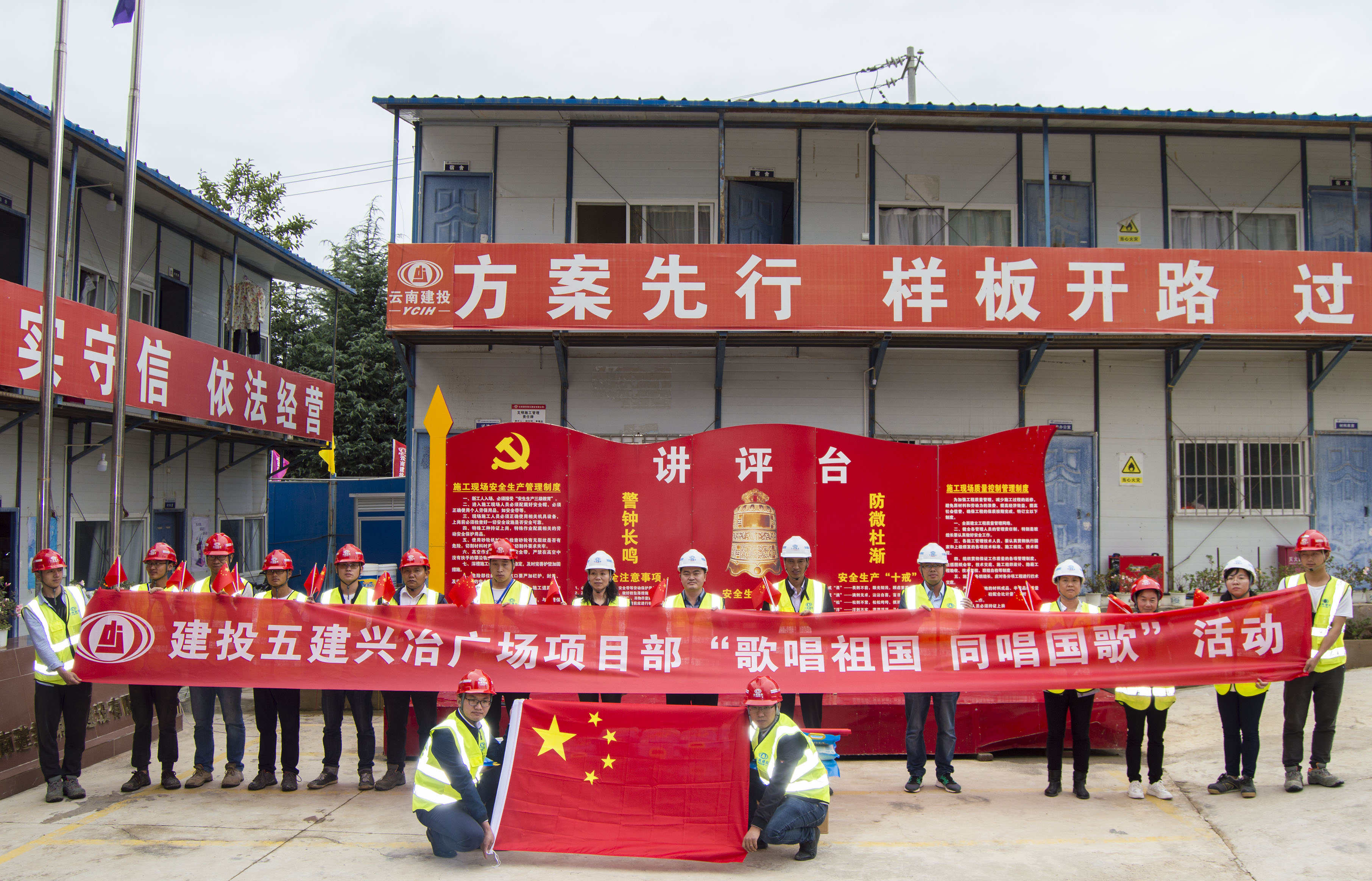 公司領(lǐng)導(dǎo)帶領(lǐng)項(xiàng)目部管理人員同唱國歌 歌唱祖國