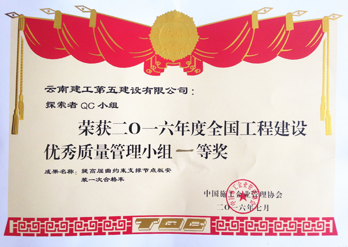2016年7月7日,公司第四直管項(xiàng)目部申報(bào)的“提高屈曲約束支撐節(jié)點(diǎn)板安裝一次合格率”成果獲中國施工企業(yè)管理協(xié)會(huì)2016年度全國工程建設(shè)優(yōu)秀質(zhì)量管理小組一等獎(jiǎng);“提高后澆帶獨(dú)立柱支撐施工一次合格率”成果獲中國施工企業(yè)管理協(xié)會(huì)2016年度全國工程建設(shè)優(yōu)秀質(zhì)量管理小組二等獎(jiǎng)。此前,該小組的以上兩項(xiàng)成果均獲得2016年度云南省工程建設(shè)優(yōu)秀質(zhì)量管理小組一等獎(jiǎng)。 &nbs...